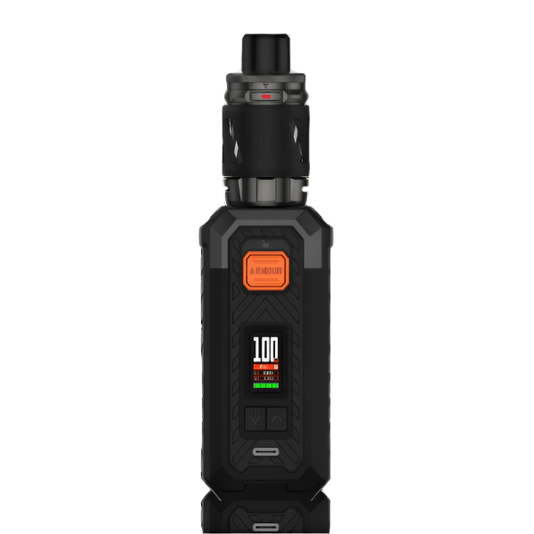 Armour S Kit by Vaporesso is an extremely durable vape kit due to its thick, protective armoured shell, as well as being reliable and powerful. This vape kit is powered by a single 21700 or 18650 (adapter included) external battery (batteries sold separately-available here). The Armour S kit enables fast, efficient charging and has a power output range of 5W-100W, perfect for new or experienced vapers. Additional coils available here. This kit also features an exceptionally innovative, easy to use fire/lock button for convenience and security.